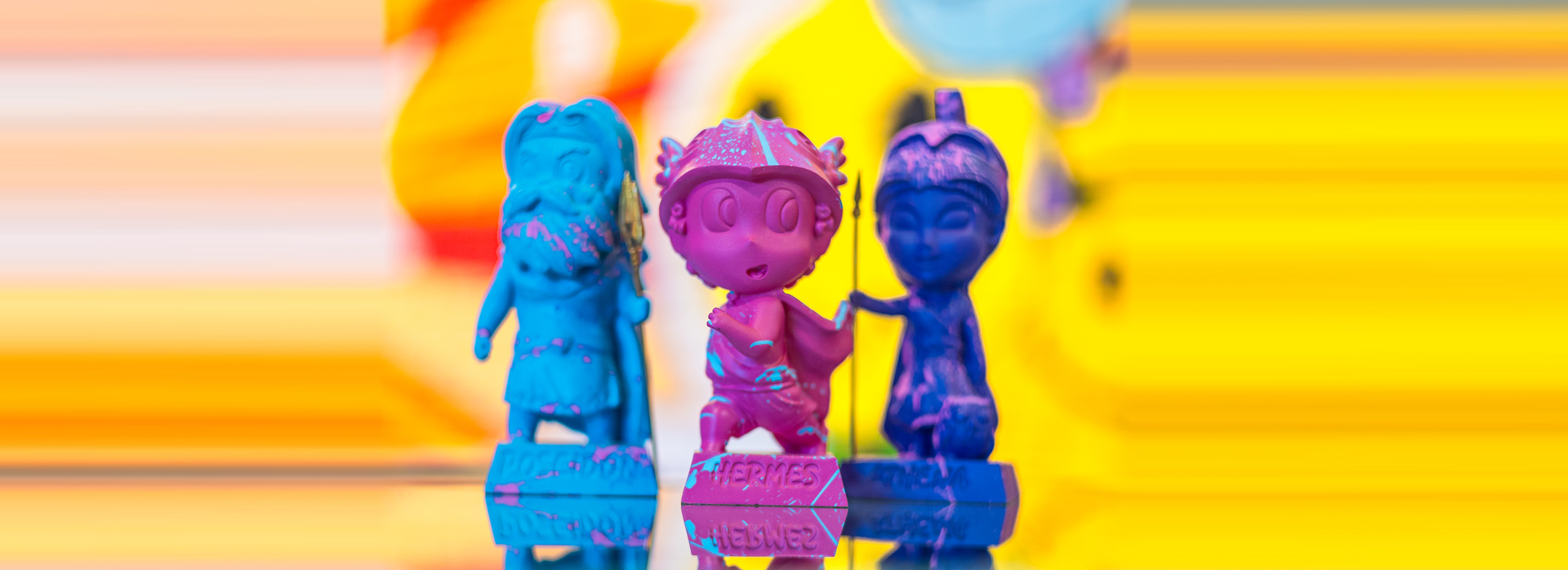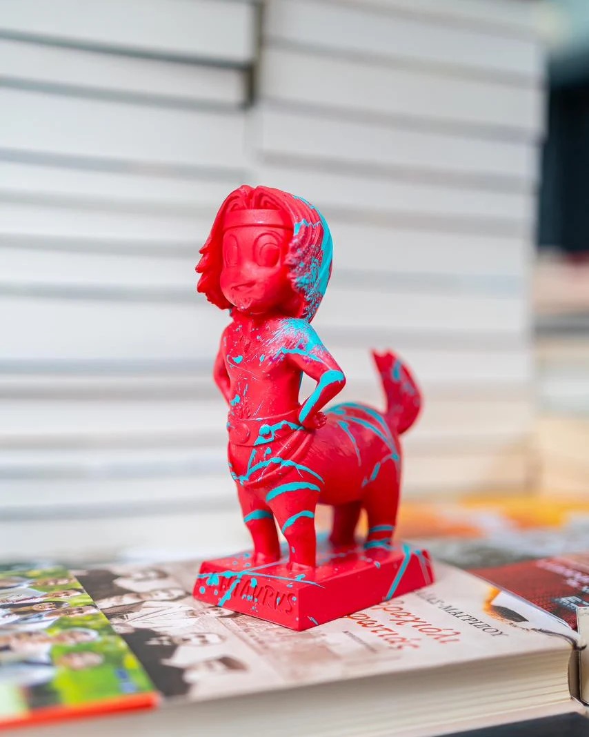 Imagine a cartoonist sculptor living in 450 B.C. creating a series of gods, demi-gods and mythical creatures . Now put him/her in a time machine and bring her/him to our present, providing her/him all the knowledge of modern techniques.