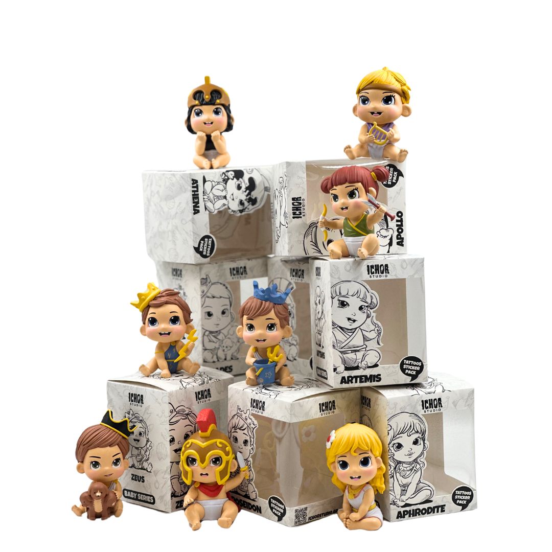 This mythical family is brought to us by the ICHOR studio. Delicate, precious statuses made by Alabaster, a mineral or rock that is soft, often used for carving and has been used throughout history primarily for carving decorative artifacts.