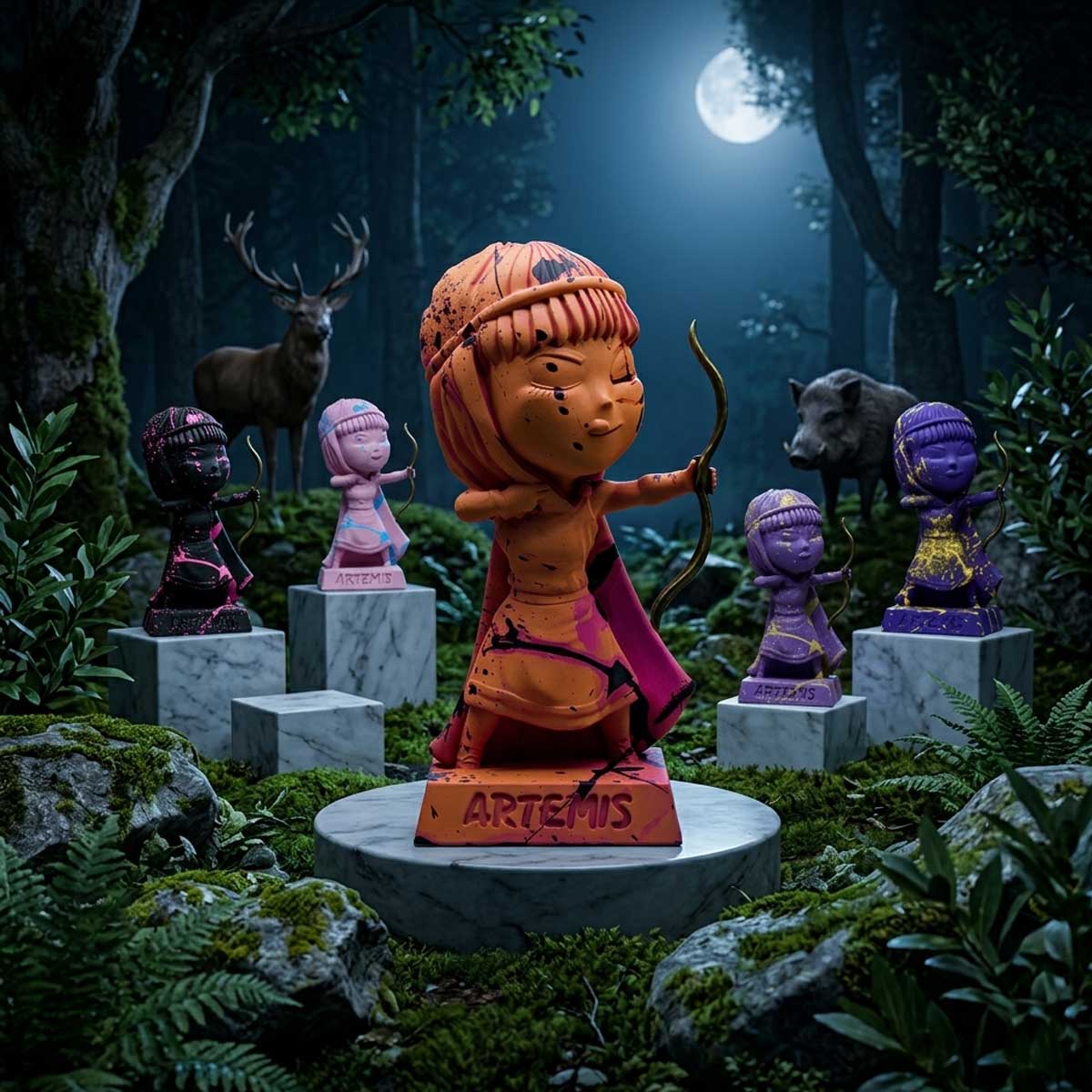 Each piece is finished with a signature hand-painted splatter technique, blending ancient tradition with modern urban aesthetics. Whether displayed as a single statement piece or as a colorful “sisterhood” set, these figures bring the power and independence of the lunar goddess into your modern home decor.